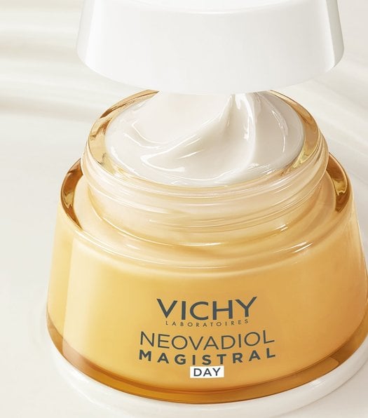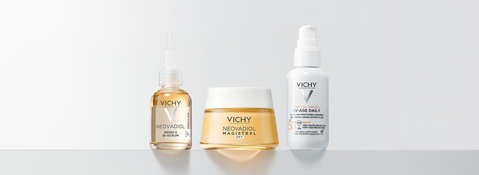 Neovadiol Sérum Global Anti-idade reativa visivelmente os mecanismos anti-idade da pele na menopausa: manchas de idade, flacidez, densidade, rugas, falta de vitalidade.