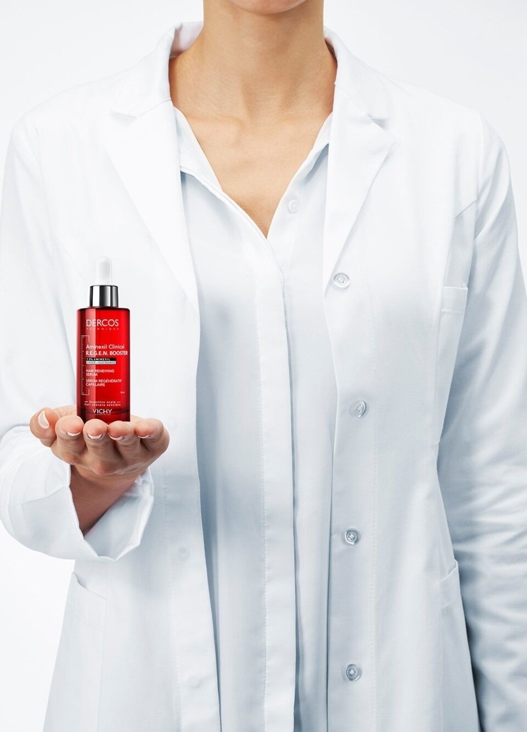 * Estudo clínico em minizonas, Aminexil Clinical R.E.G.E.N. Booster vs. valores de base, fototricograma com 40 mulheres e 37 homens após 12 semanas - fotos 2022: estudo clínico, Aminexil Clinical R.E.G.E.N. Booster vs. valores de base, eficácia percebida em 30 mulheres e 30 homens a T0 e após 12 semanas - 2023