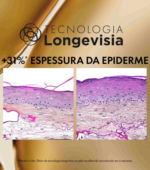 Apoiada por mais de 20 anos de investigação em ciência da longevidade e 30 anos de experiência em pele madura, a inovadora tecnologia Longevisia visa devolver à pele o seu poder natural de regeneração, para um +31% de espessura de tecido epidérmico.