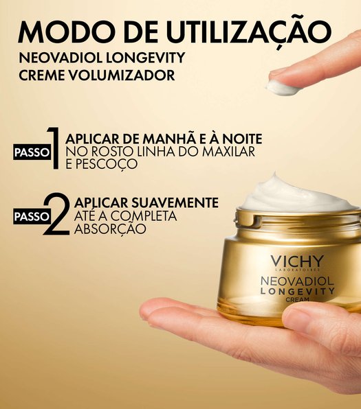 - Descobre uma inovação no envelhecimento da pele madura com o Creme Volumizador Neovadiol Longevity dos Laboratórios Vichy.