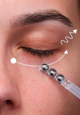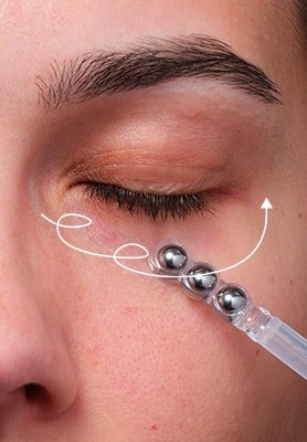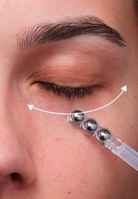 O nosso sérum de olhos Collagen Specialist 16 possui um aplicador de Tripla esfera para realizar uma massagem potenciadora do colagénio.