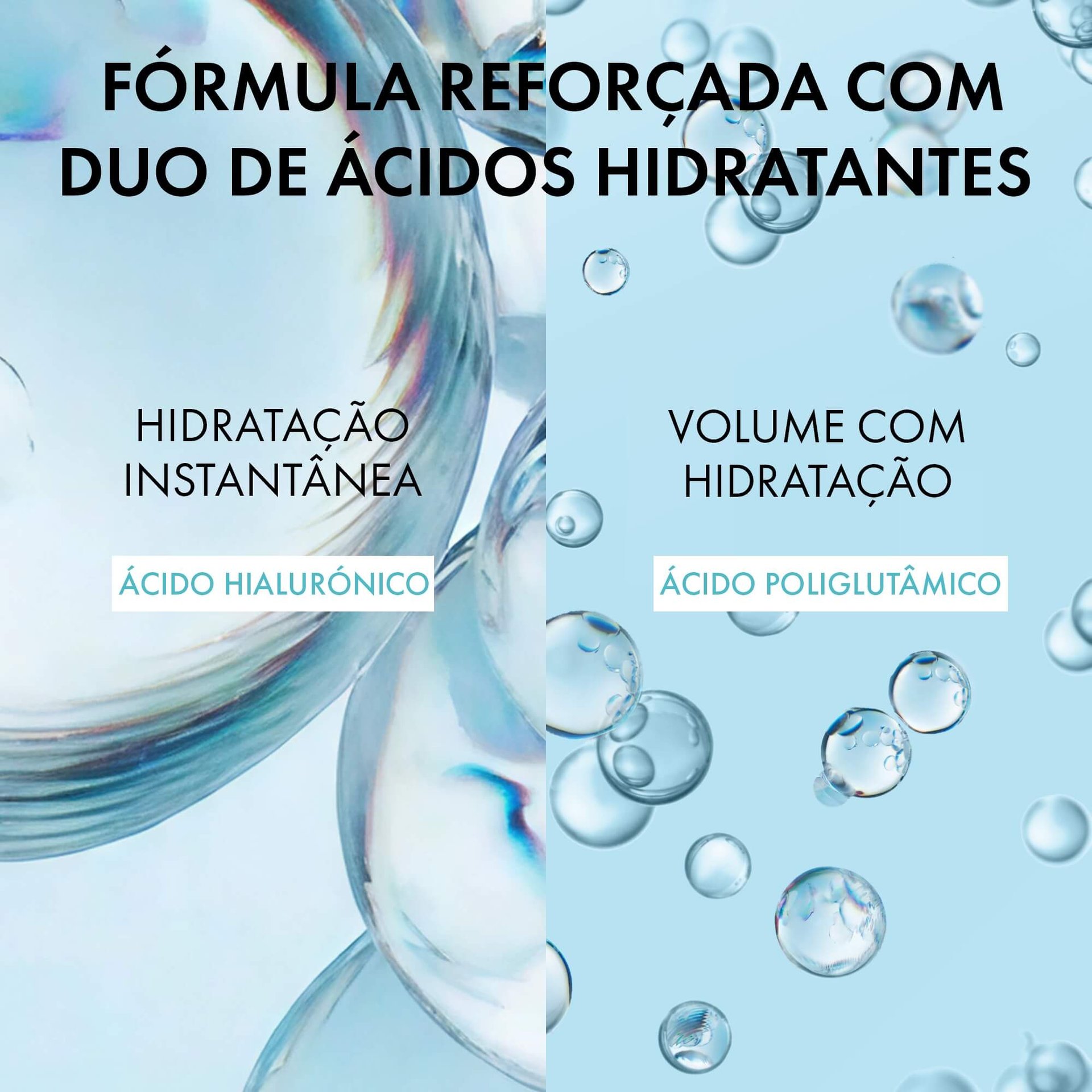 Um ativo dermatológico de referência! Ao reter 1000 vezes o seu peso em água, hidrata e preenche a pele.