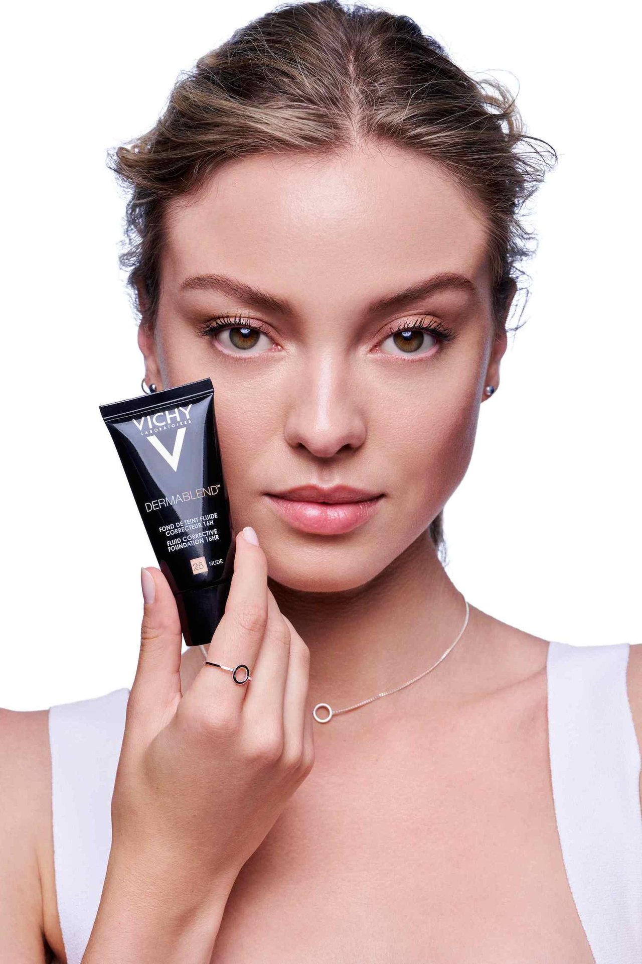 Maquilhagem com efeito de "lifting" para uma luminosidade imediata.